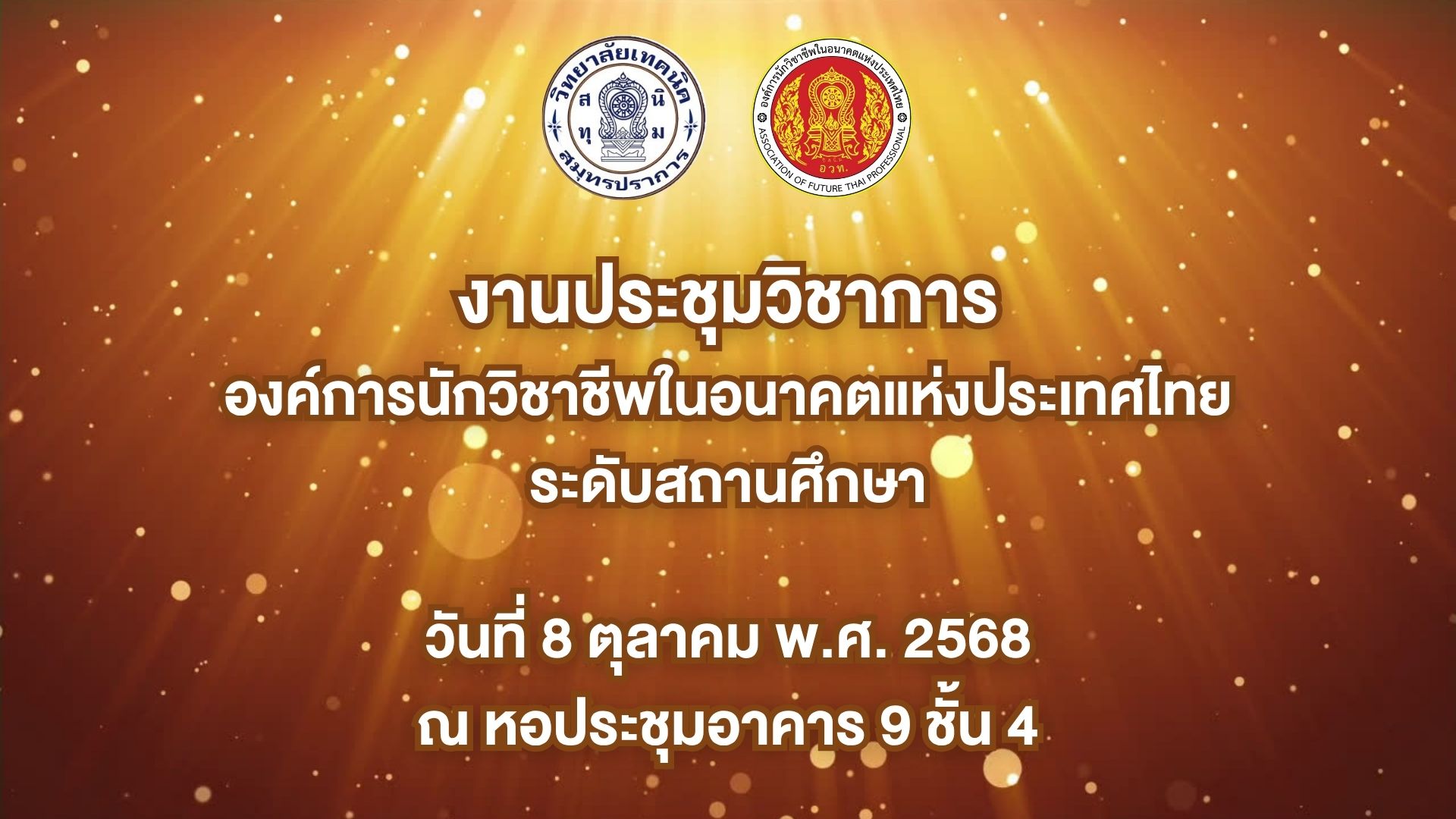 ขอเชิญนักเรียน นักศึกษา เข้าร่วมโครงการประชุมวิชาการองค์การนักวิชาชีพในอนาคตแห่งประเทศไทย ระดับสถานศ…